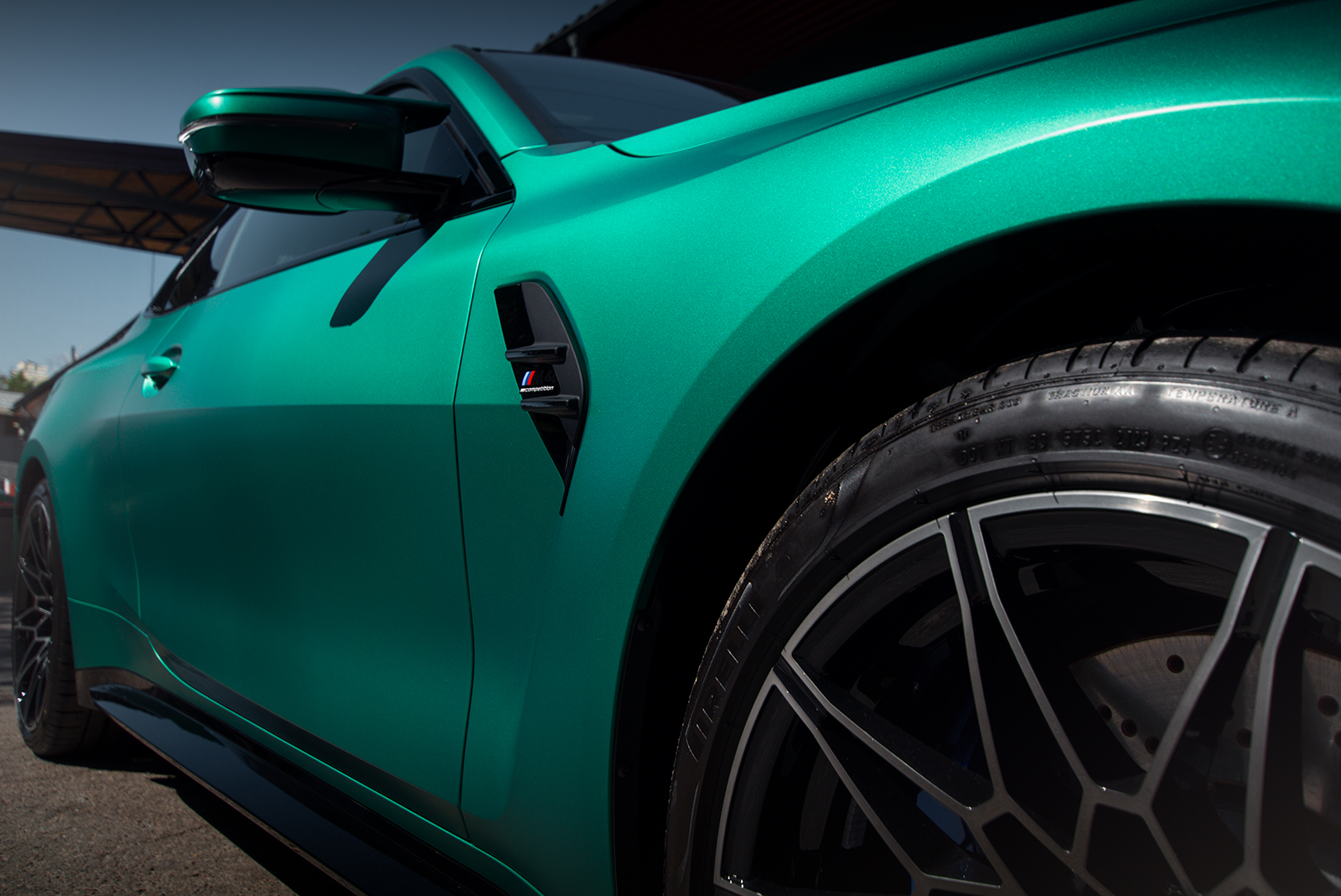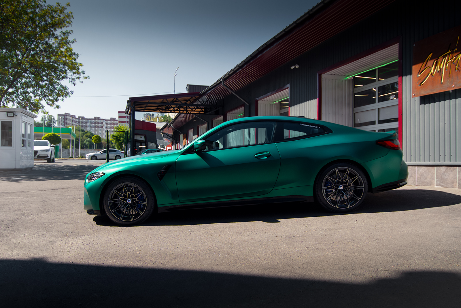 BMW M4 в сатиновій поліуретановій захисній плівці