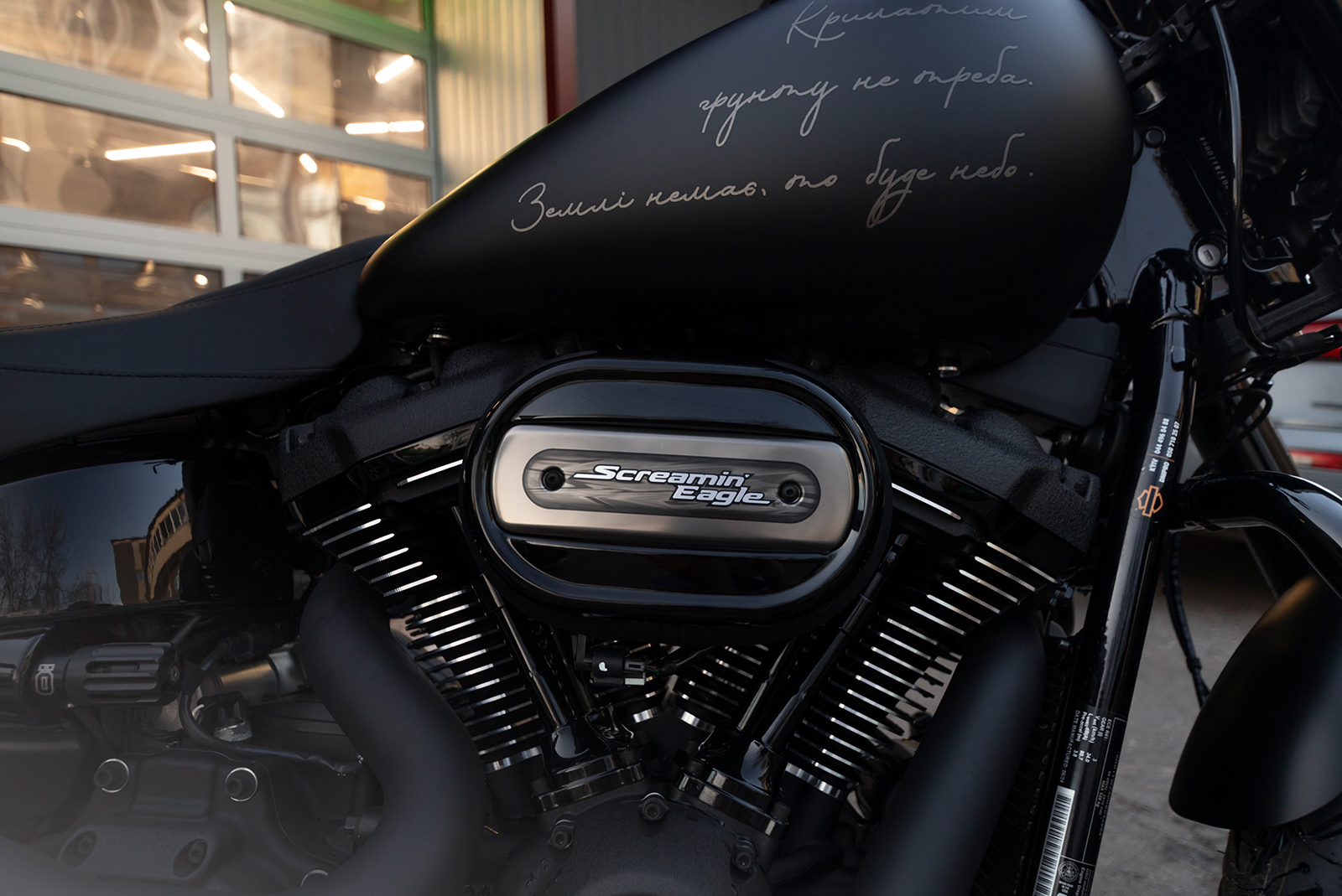 Harley Davidson Screamin’ Eagle в індивідуальному дизайні з віршами Ліни костенко, та в захисному сатиновому поліуретані