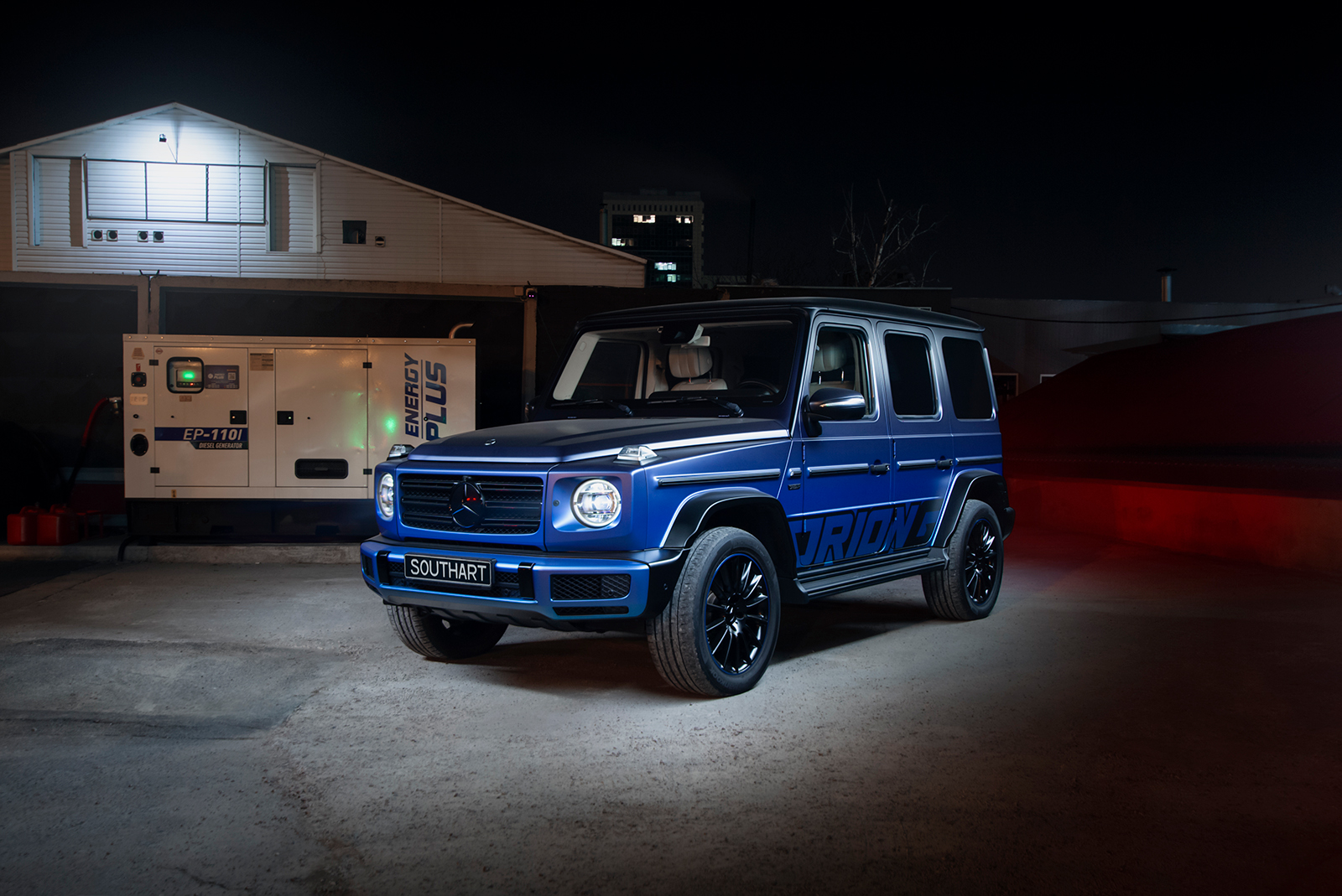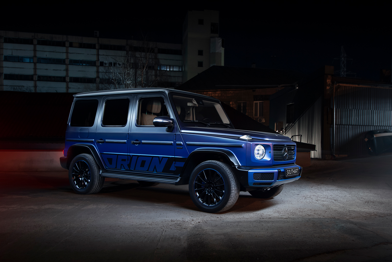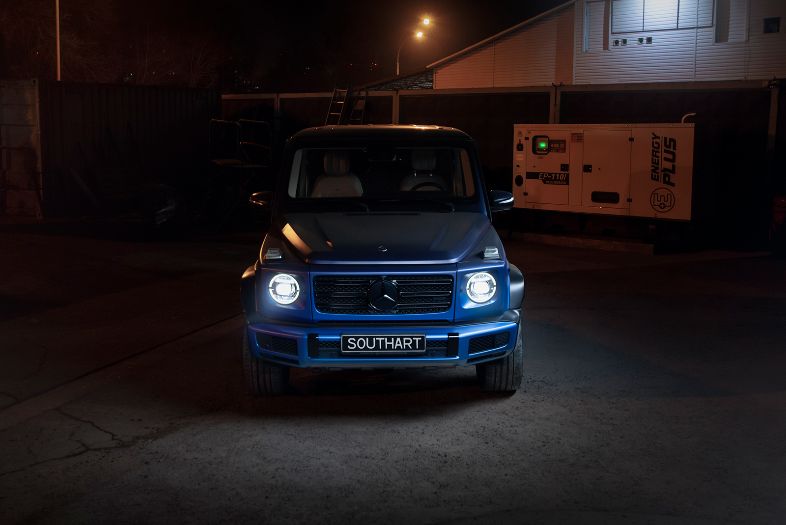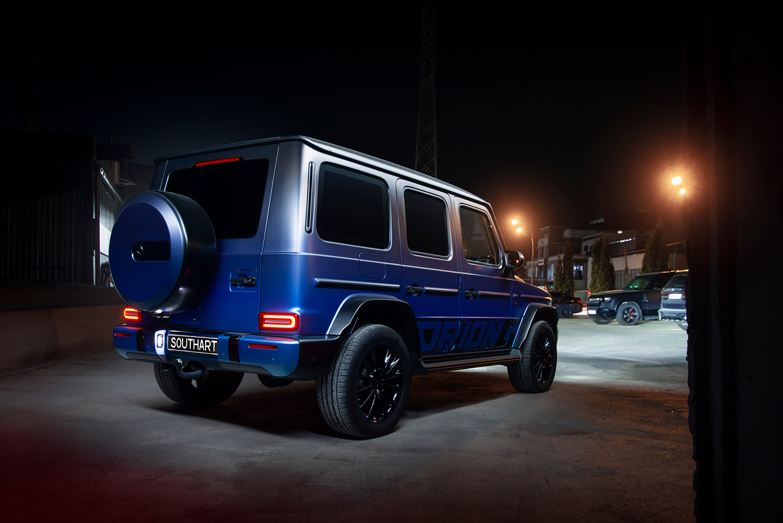 Mercedes-Benz G-class обклеєний в градієнт, з нанесенням додаткових елементів дизайну та захищений в сатиновий поліуретан