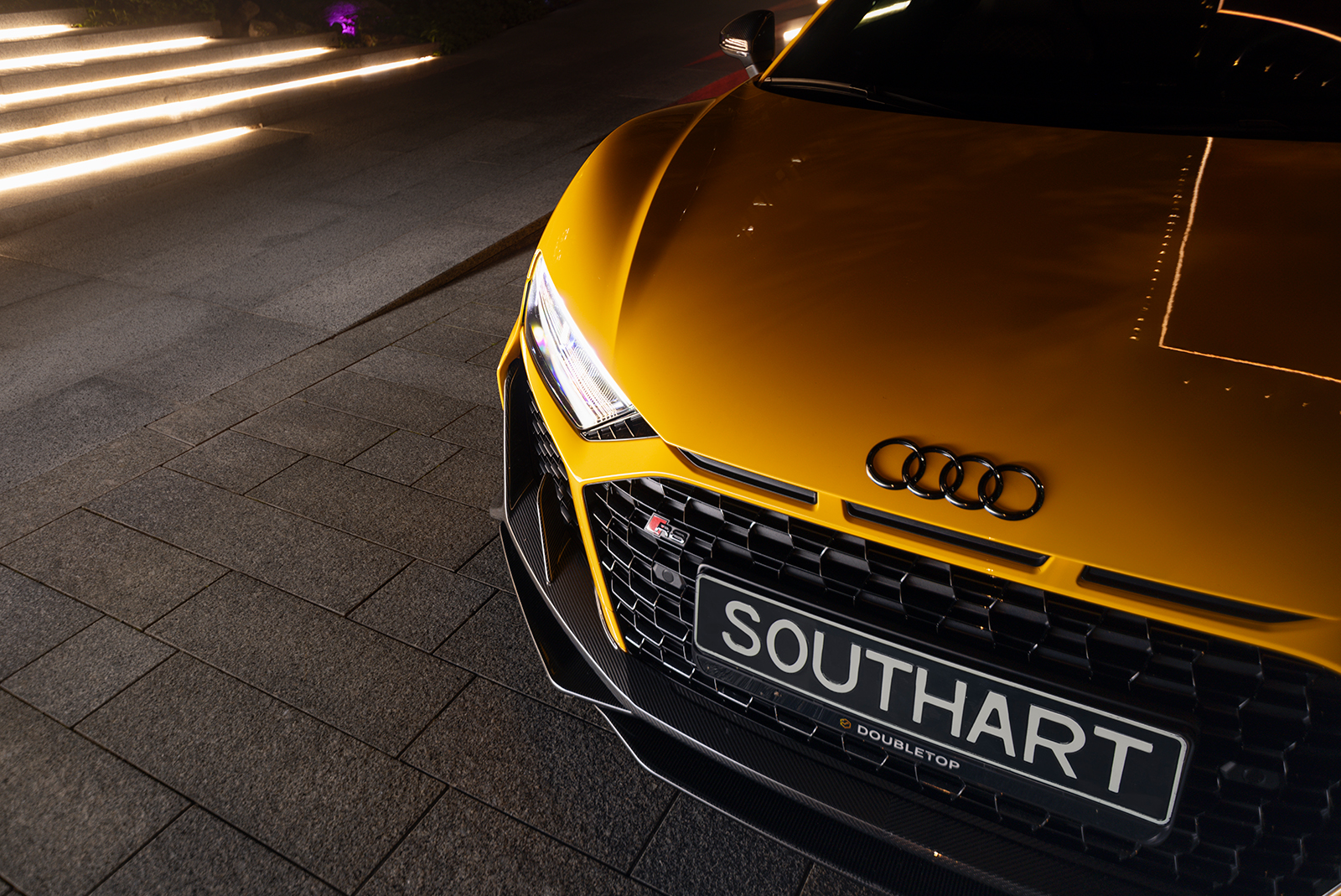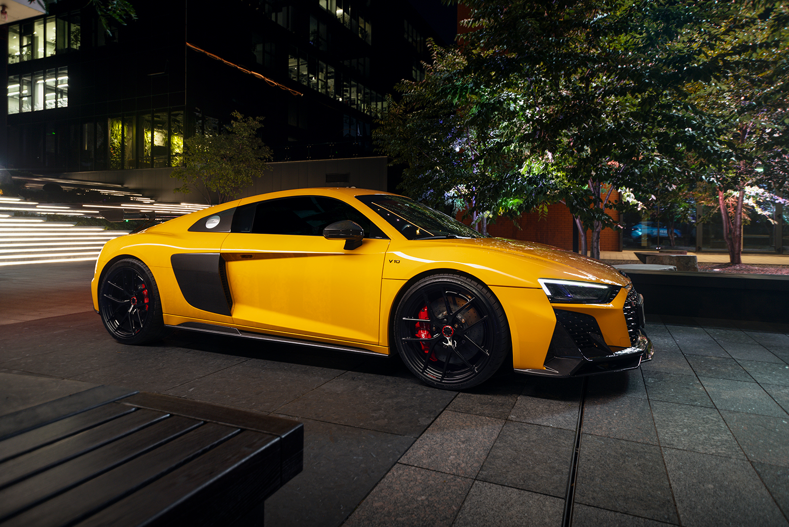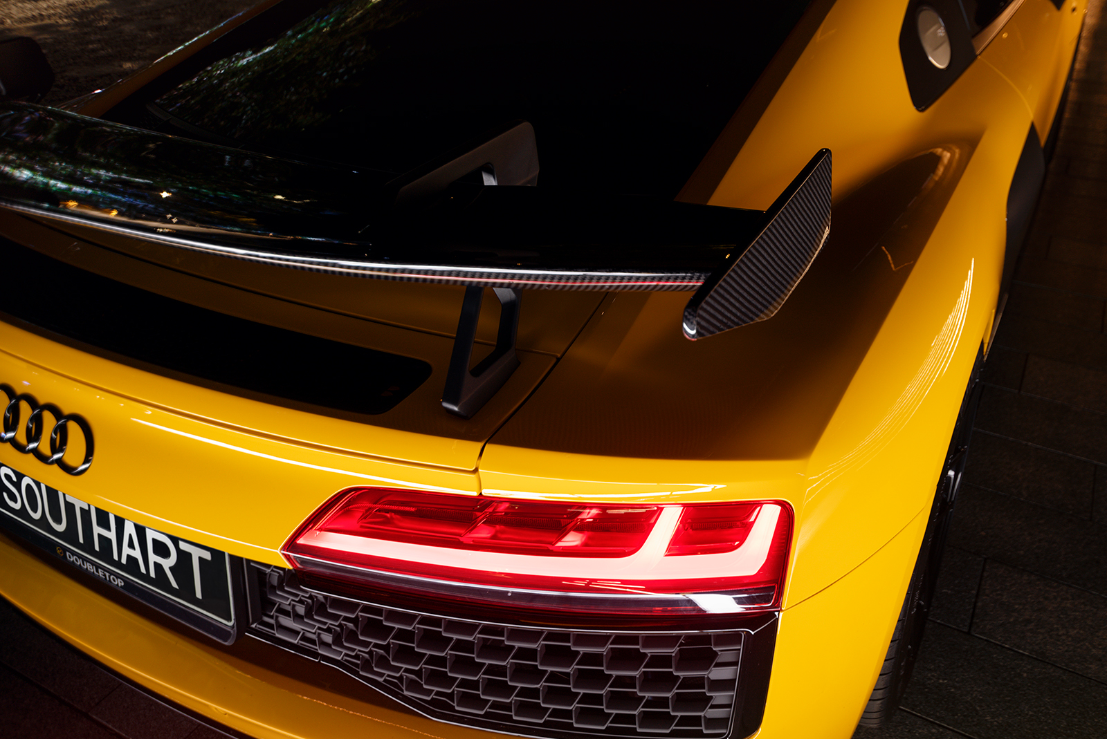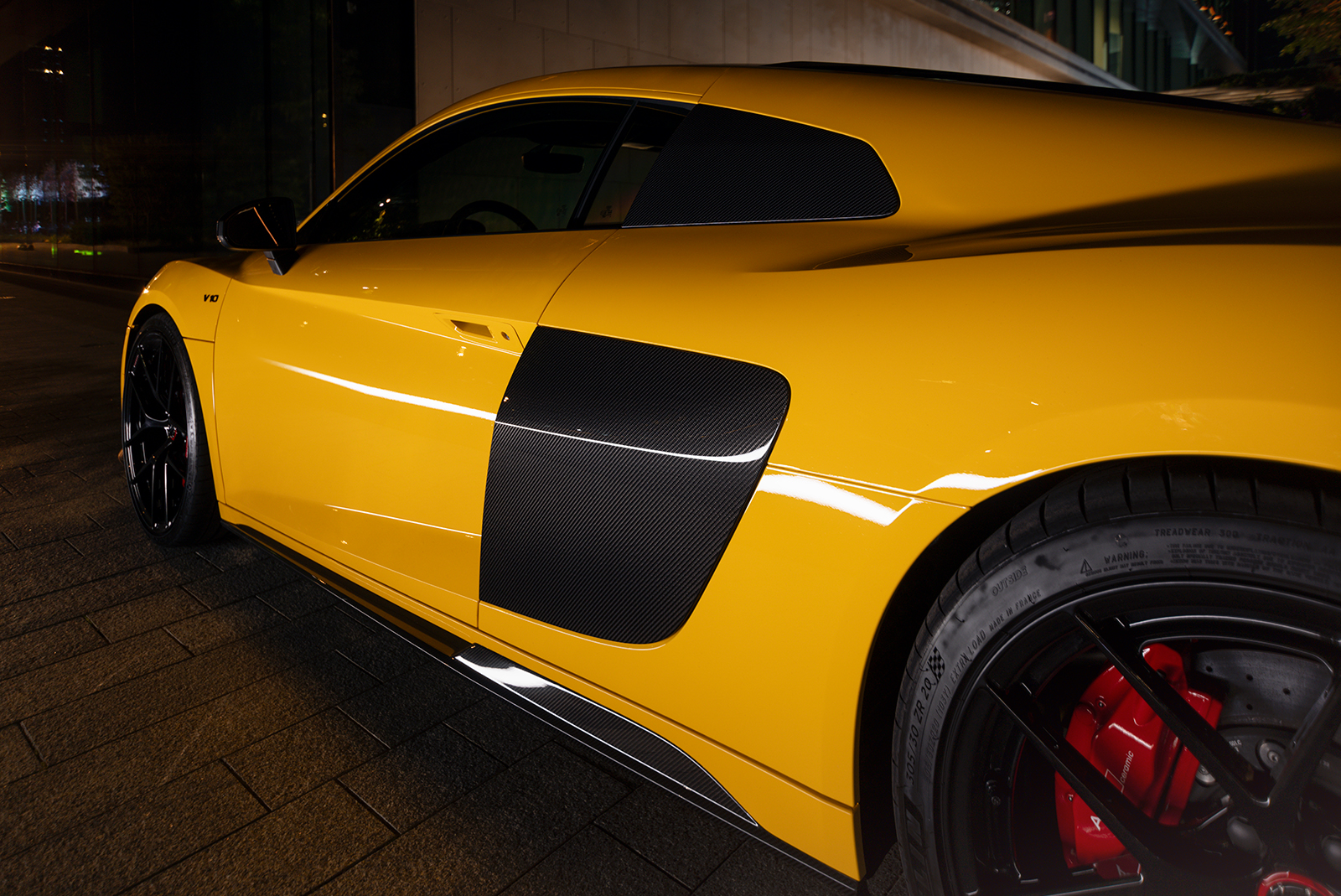 Audi R8 в ультраглянцевій захисній поліуретановій плівці та зі встановленим карбоновим обвісом