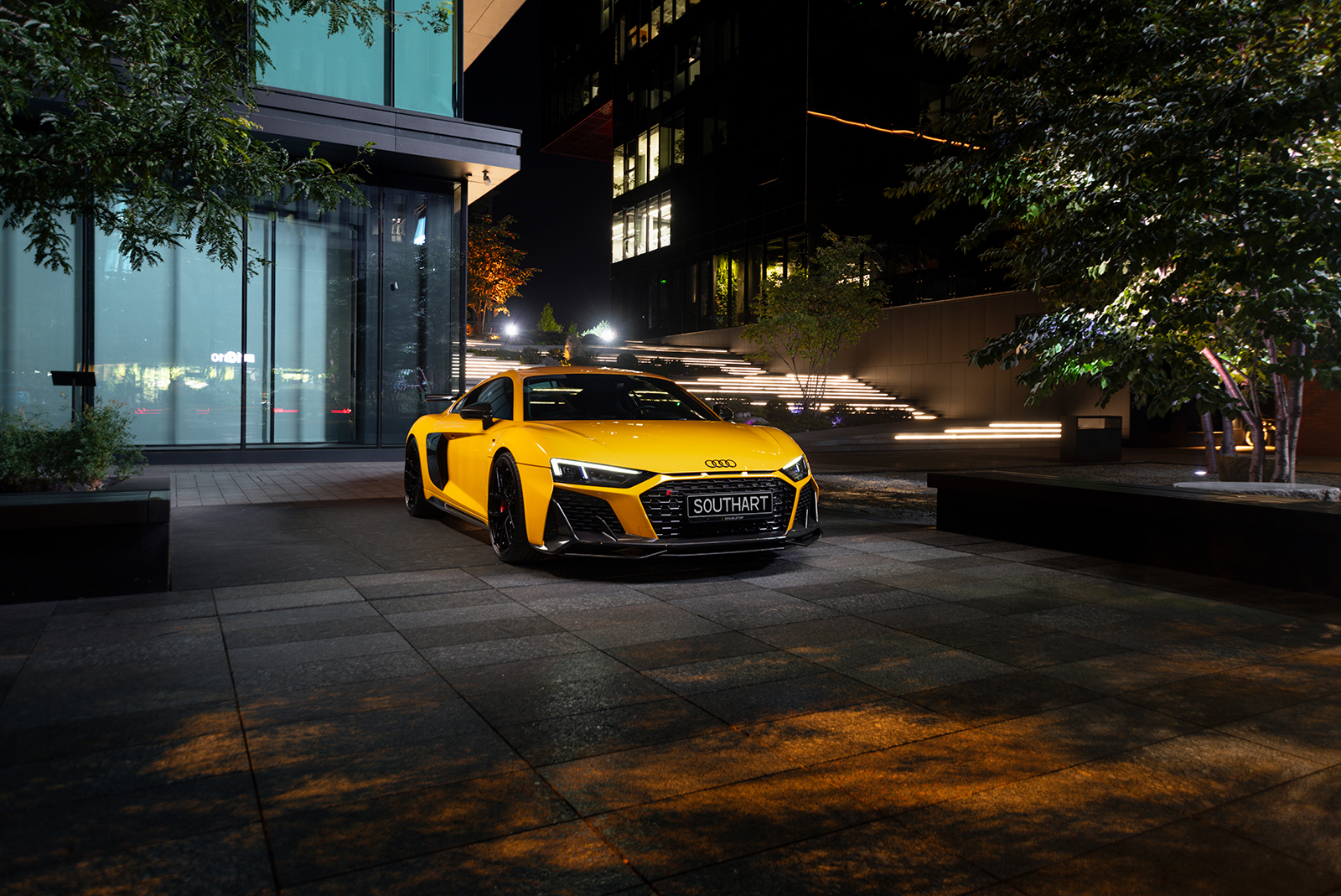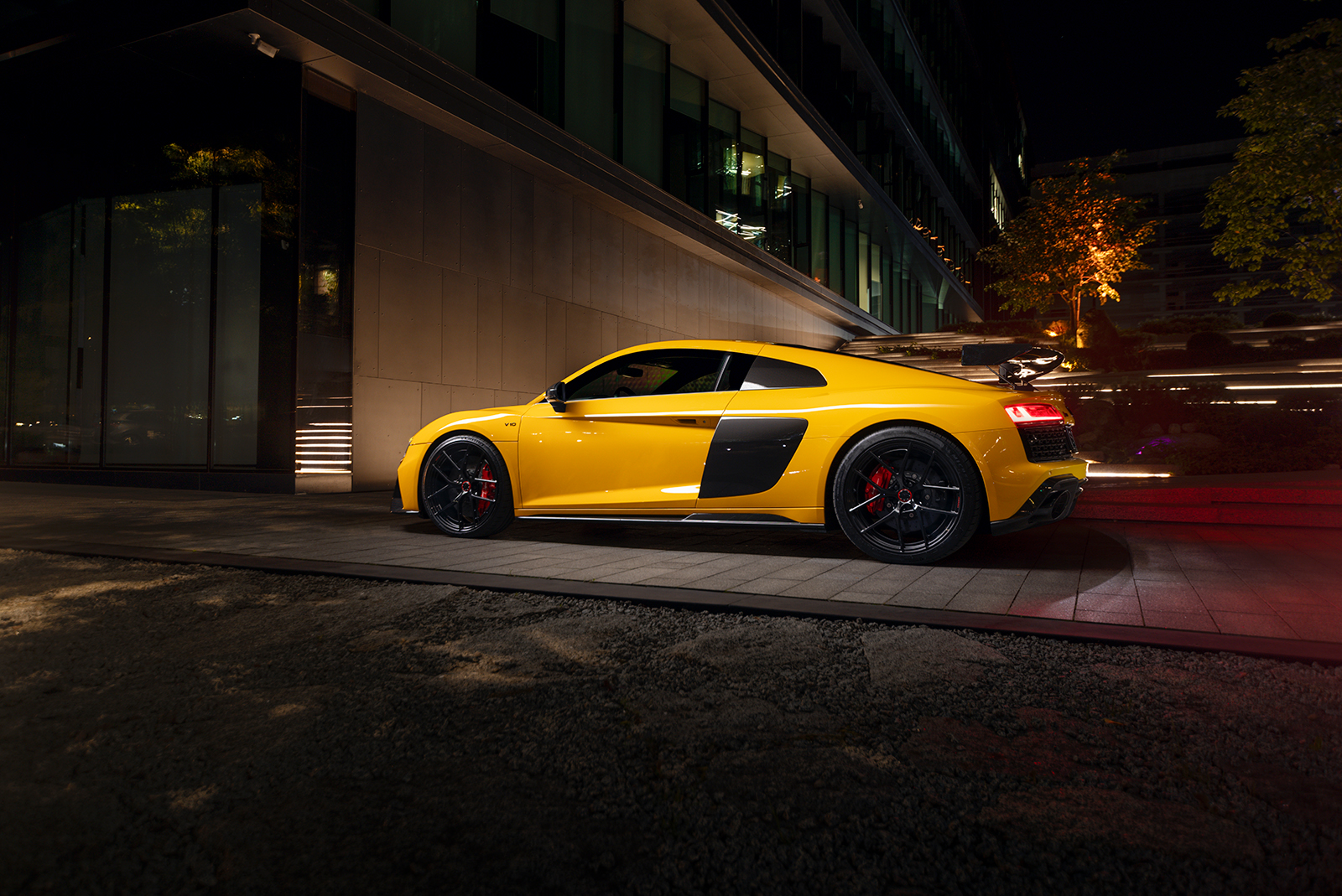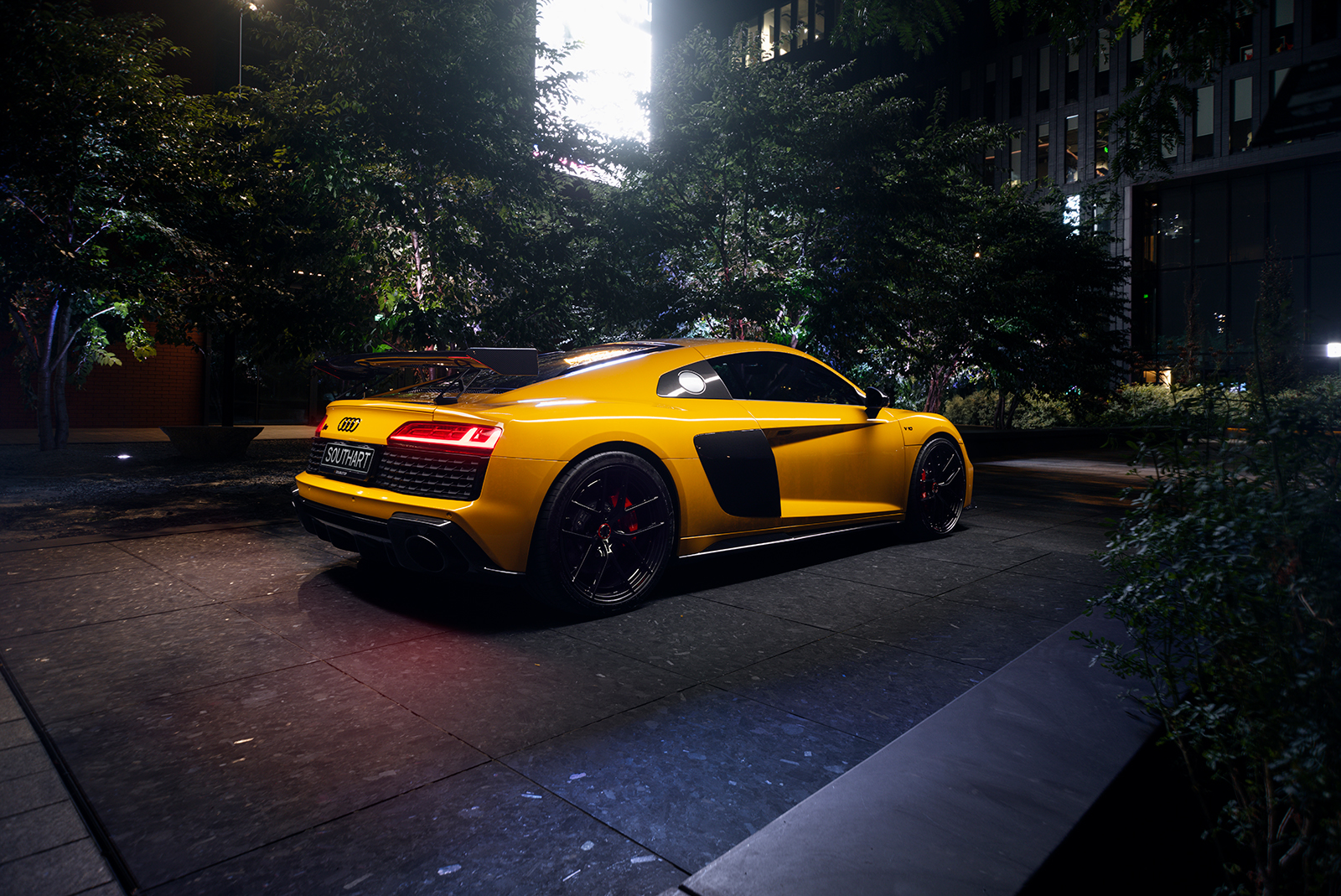 Audi R8 в ультраглянцевій захисній поліуретановій плівці та зі встановленим карбоновим обвісом