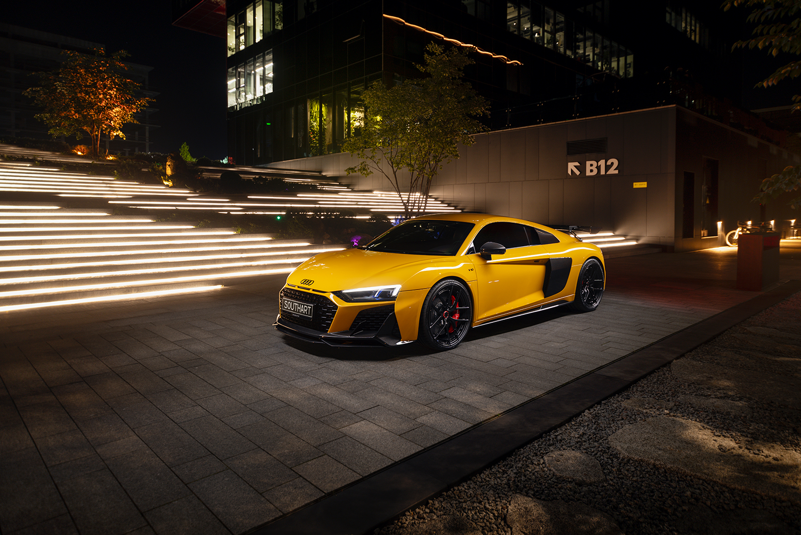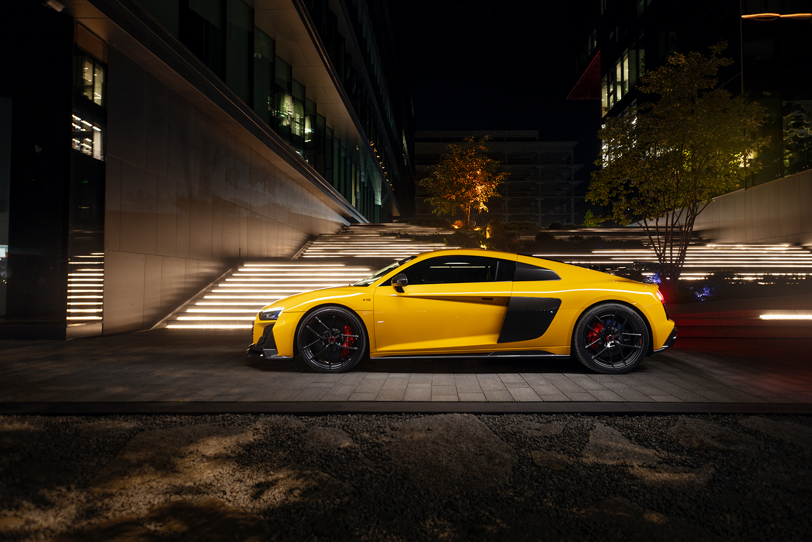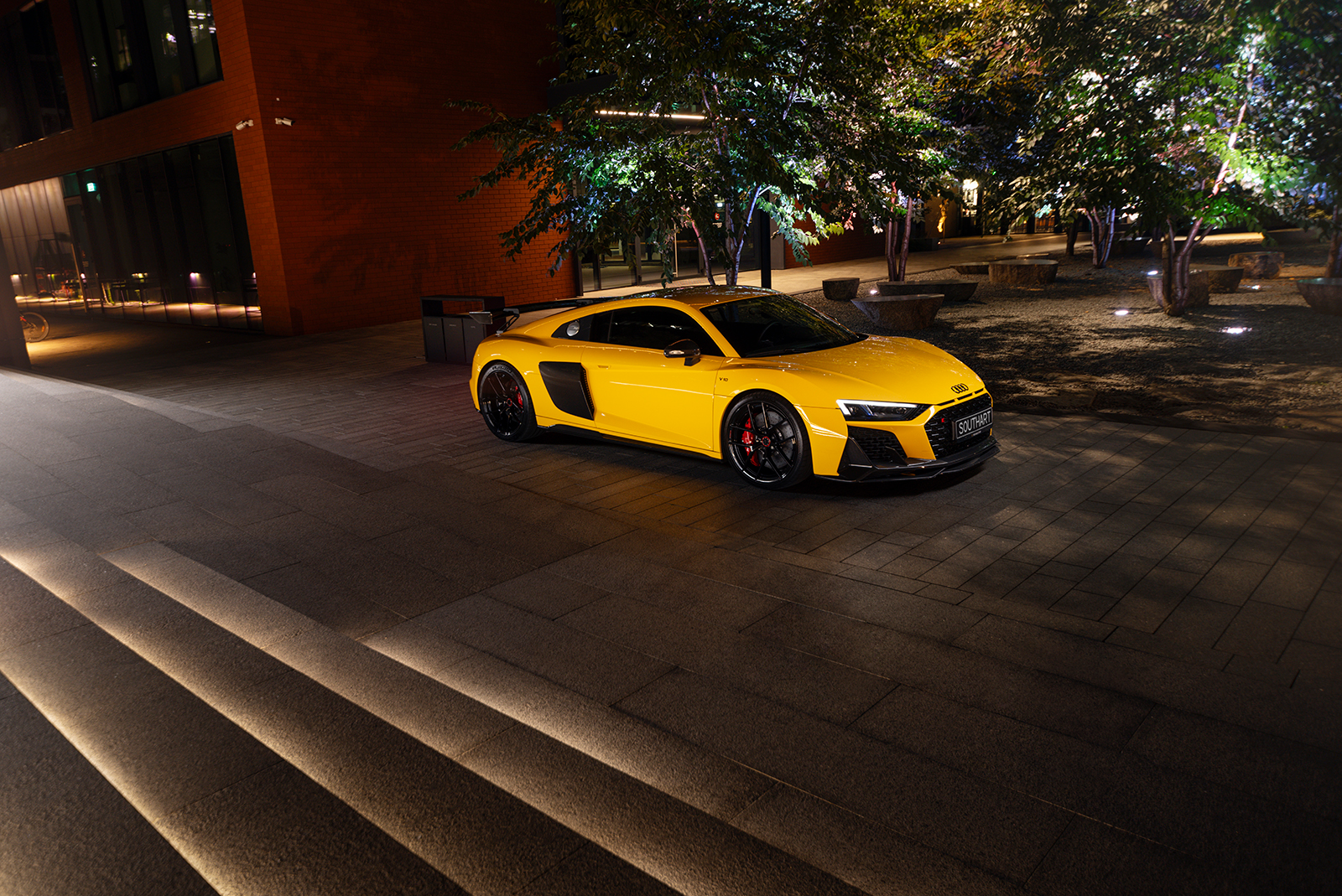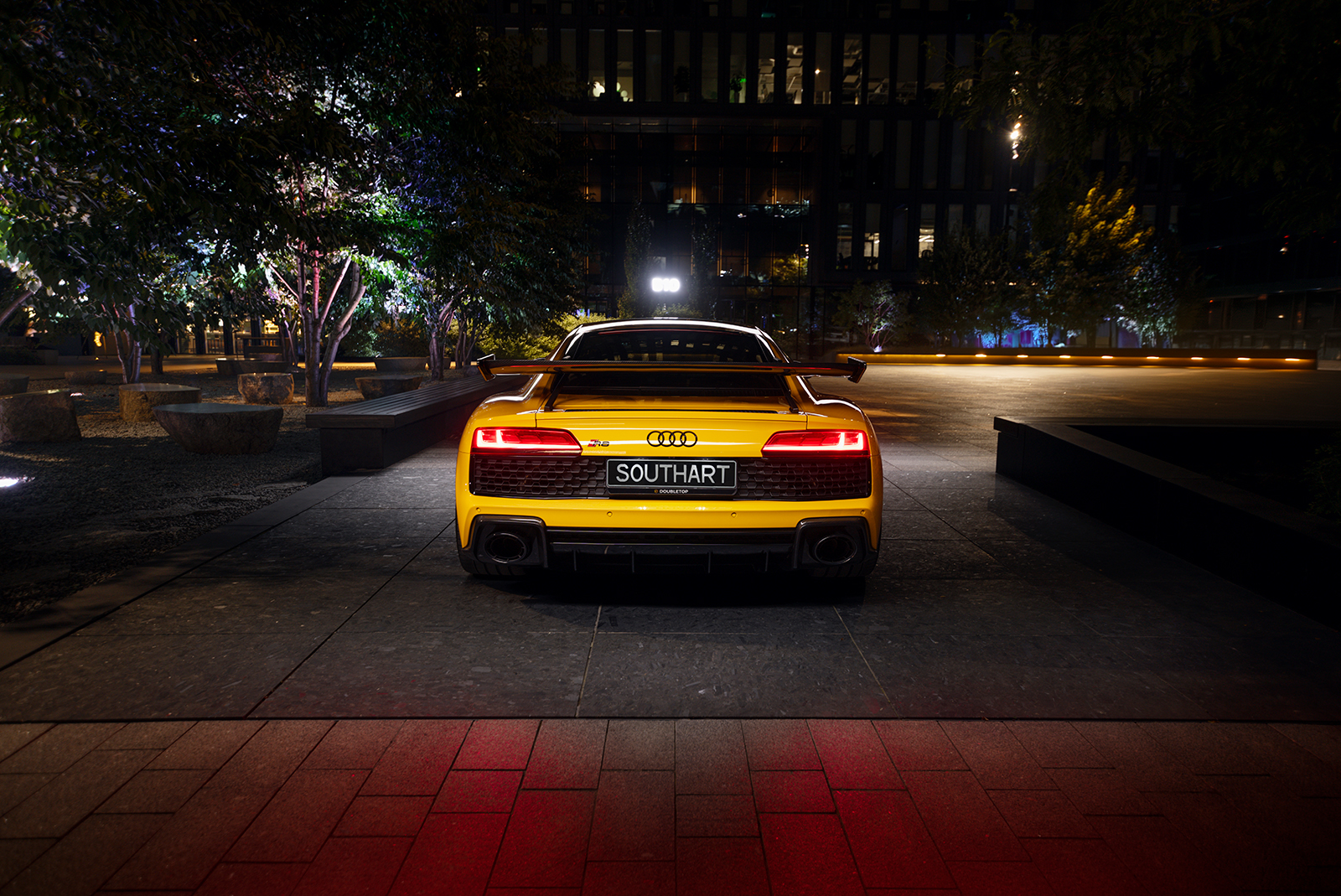 Audi R8 в ультраглянцевій захисній поліуретановій плівці та зі встановленим карбоновим обвісом