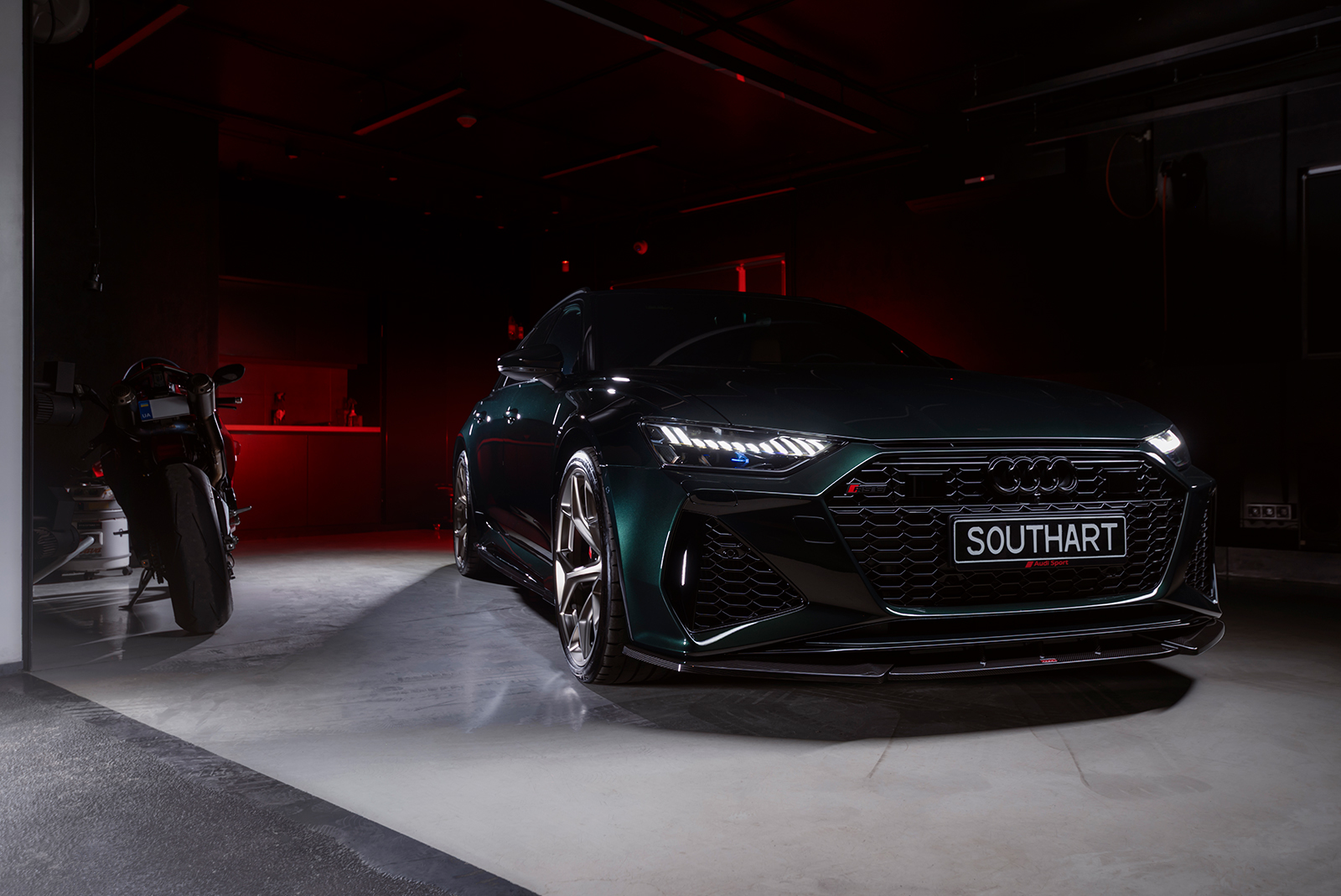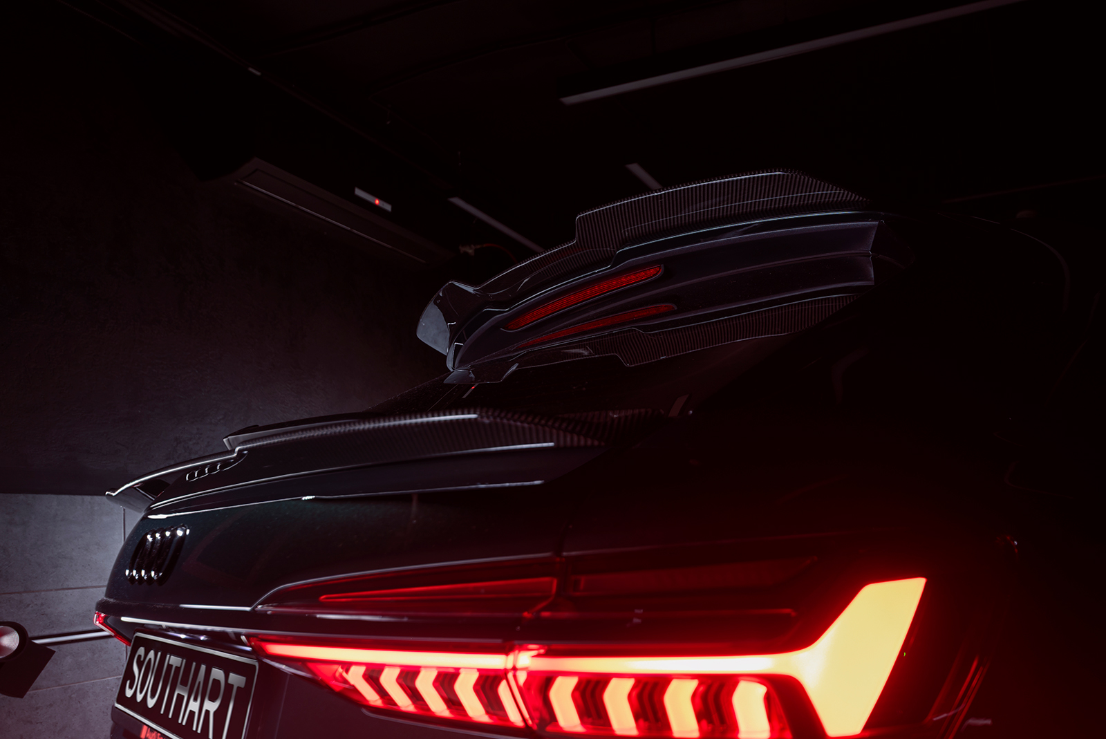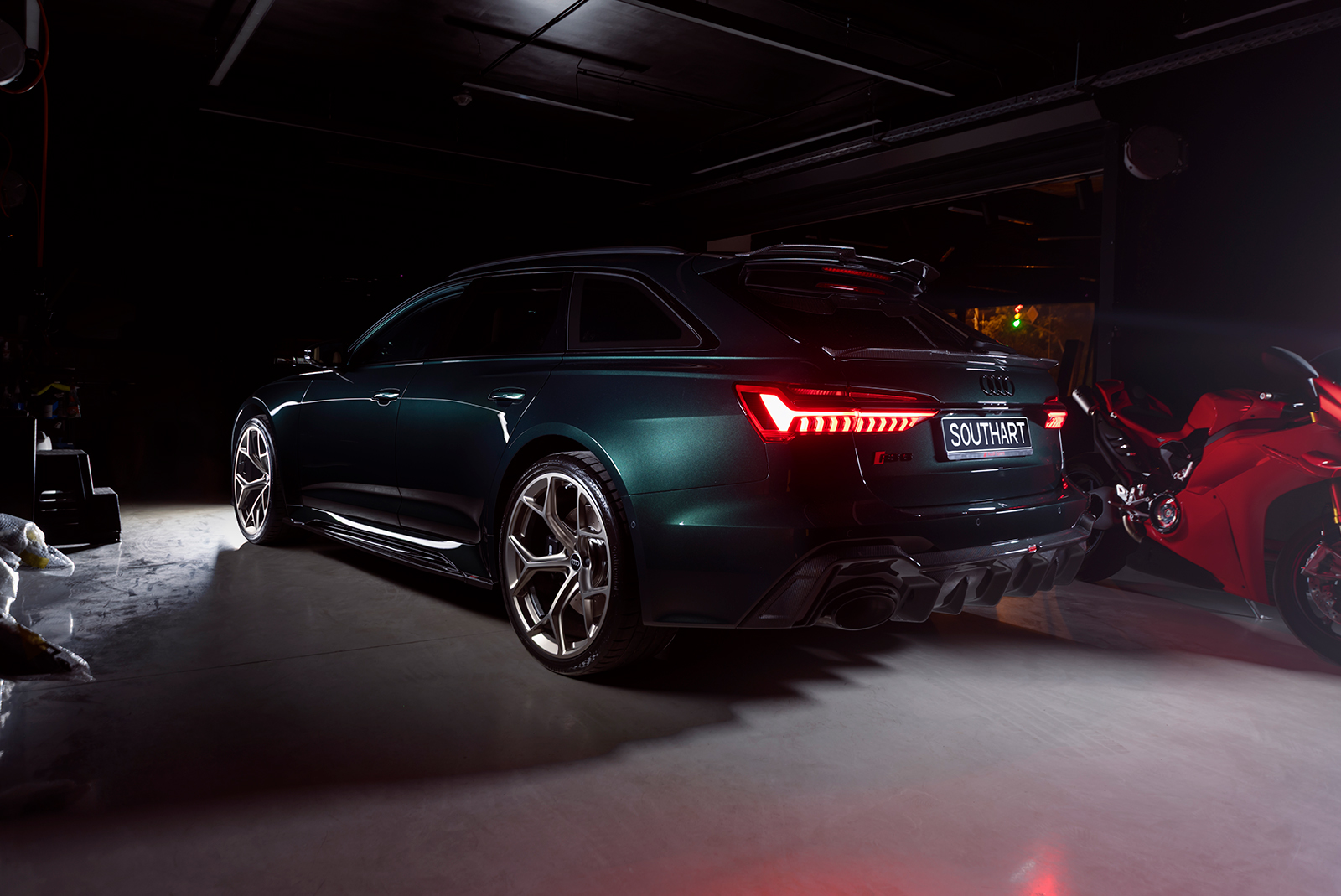 Audi RS6 в ультраглянцевій захисній поліуретановій плівці зі встановленим карбоновим обвісом
