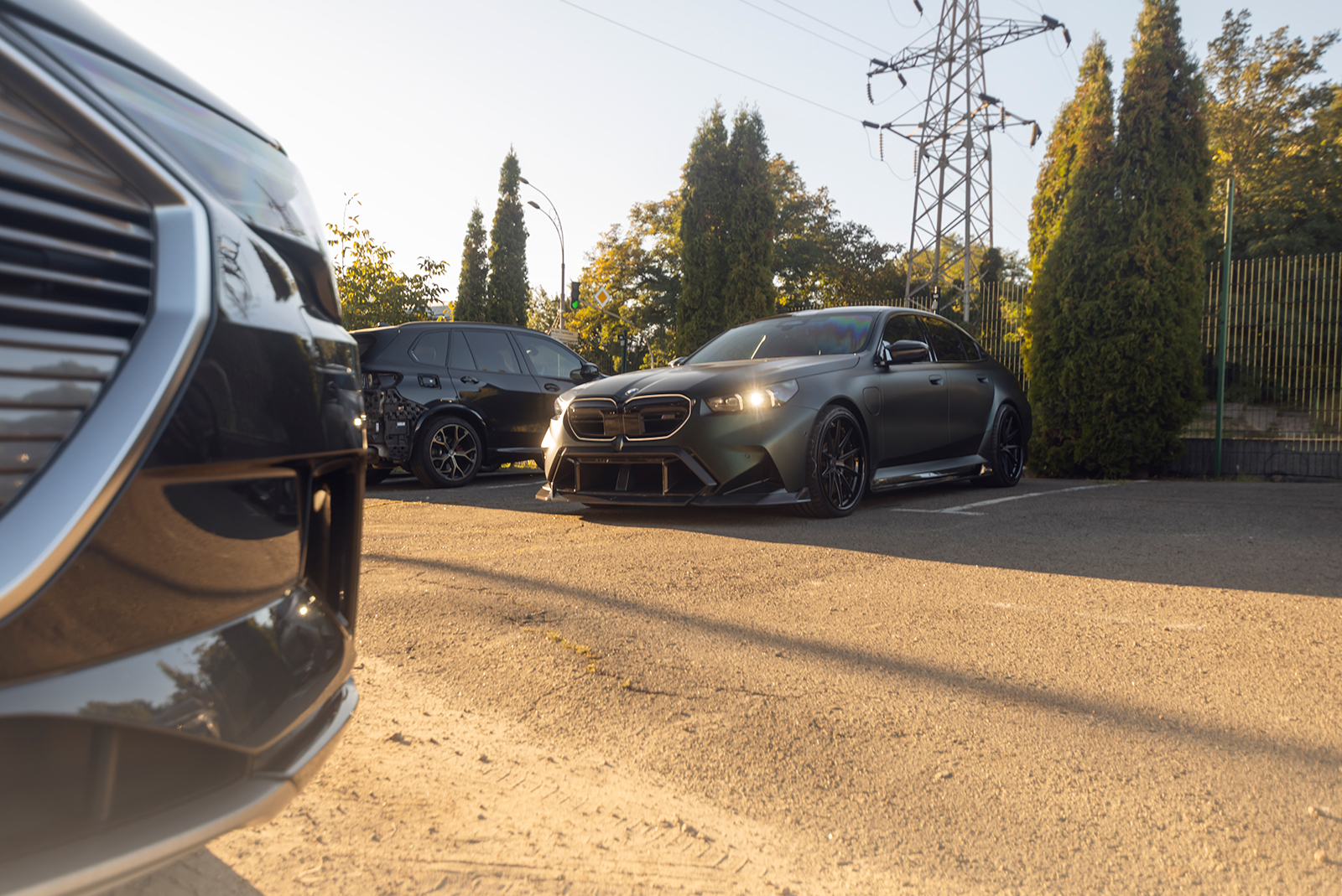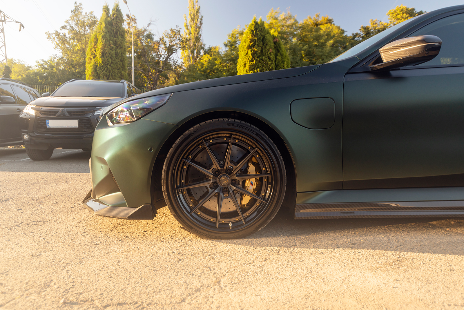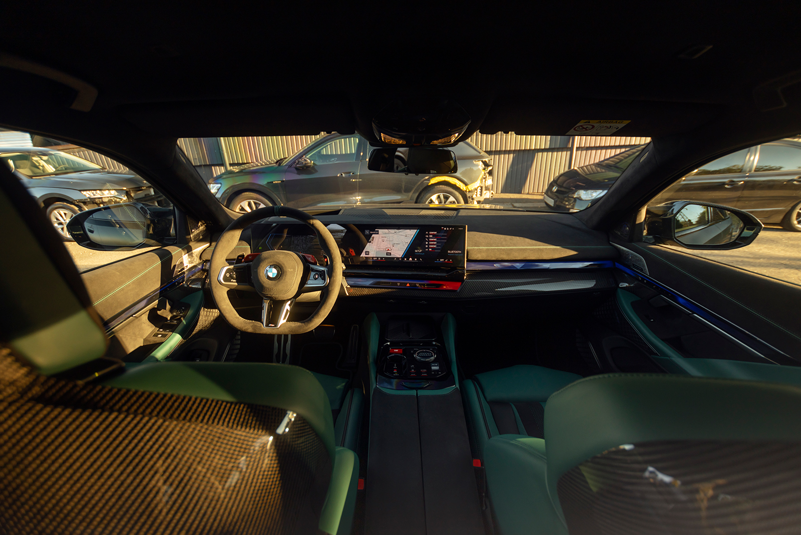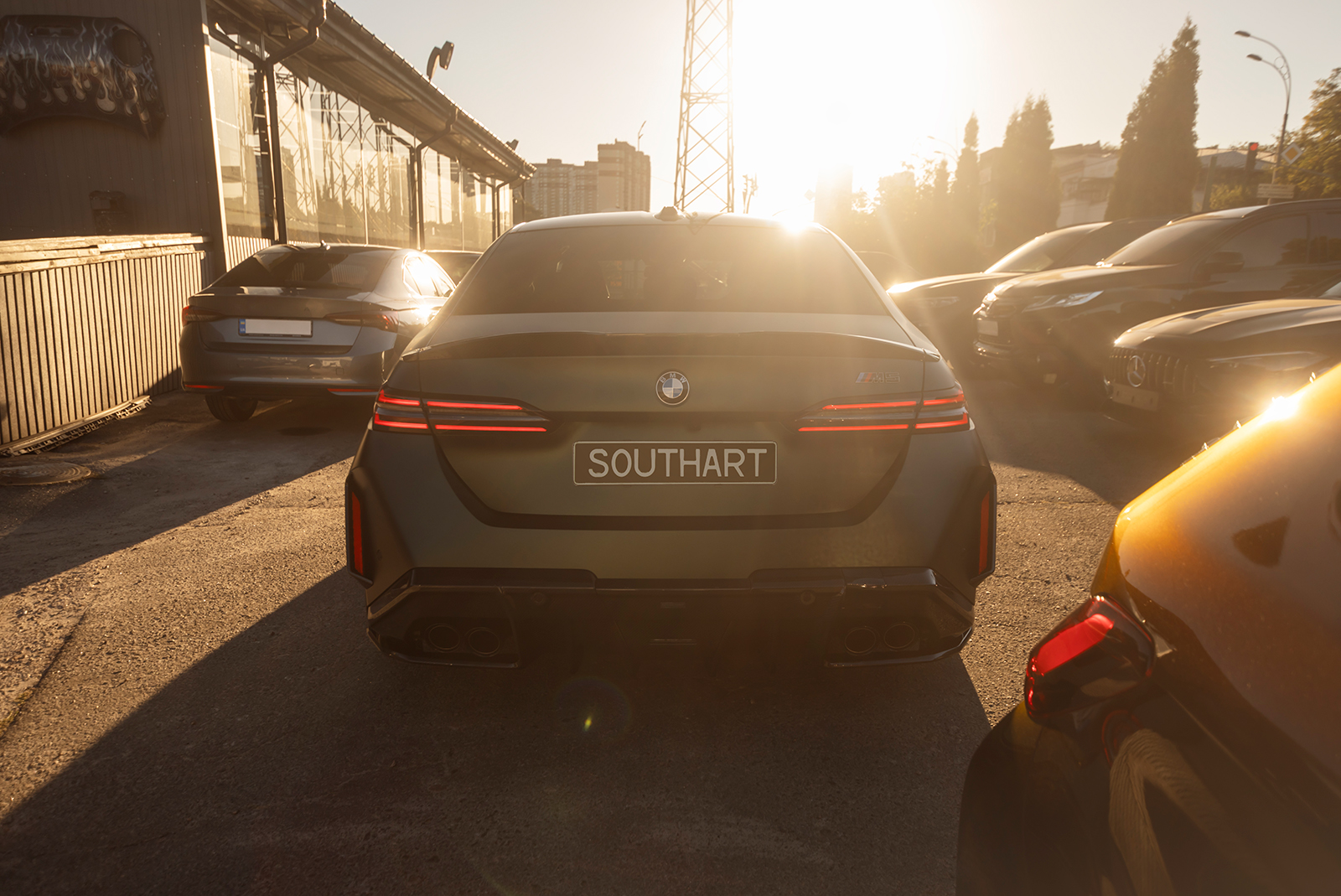BMW M5 в кольоровій захисній поліуретановій плівці з повним перешиттям салону з шумоізоляцією, та з встановленням колісних дисків
