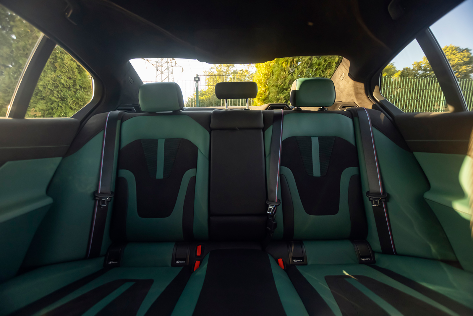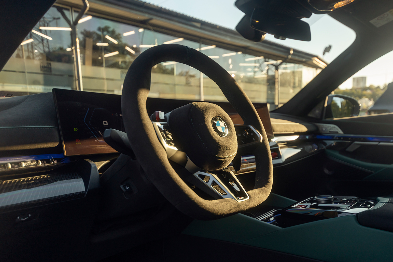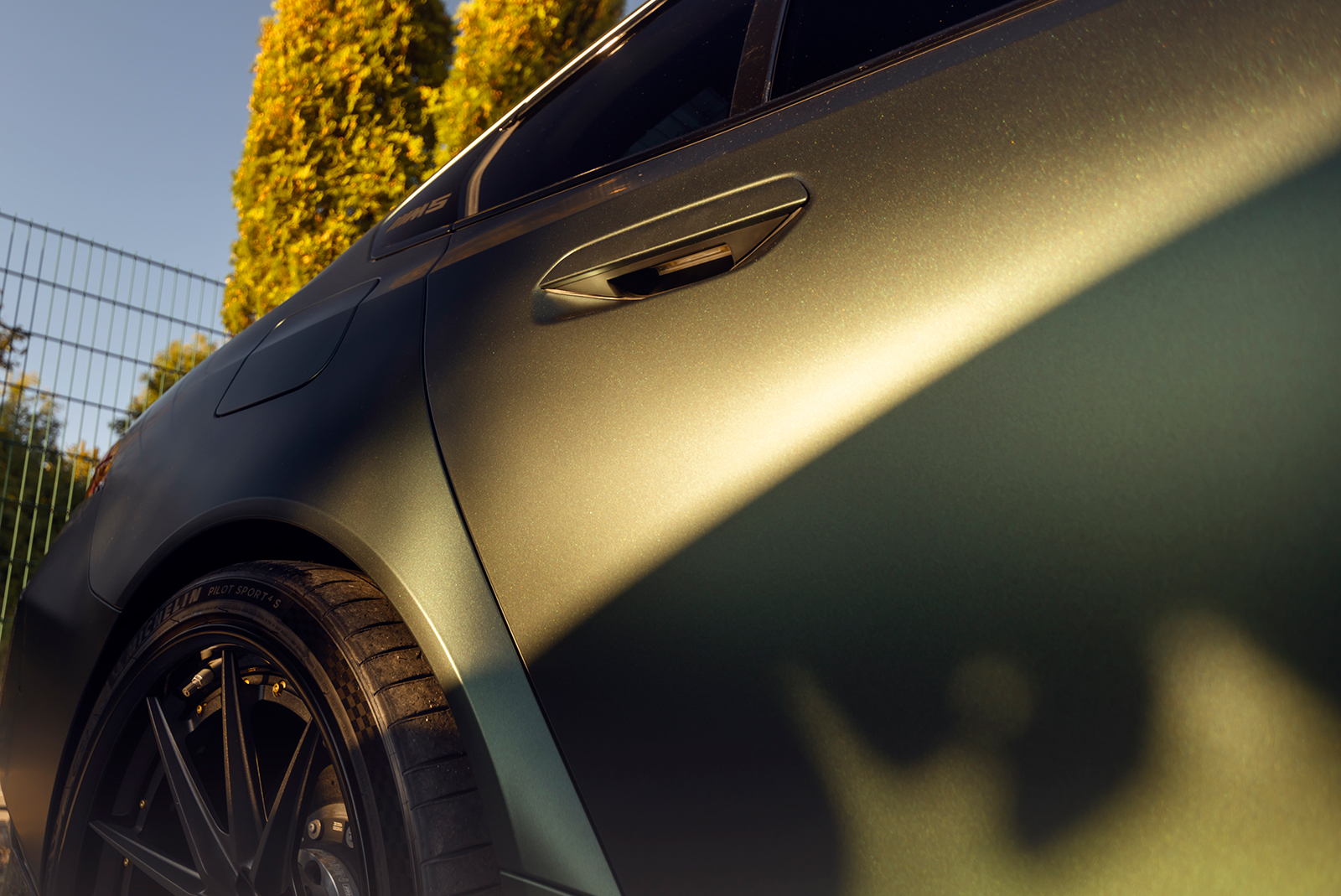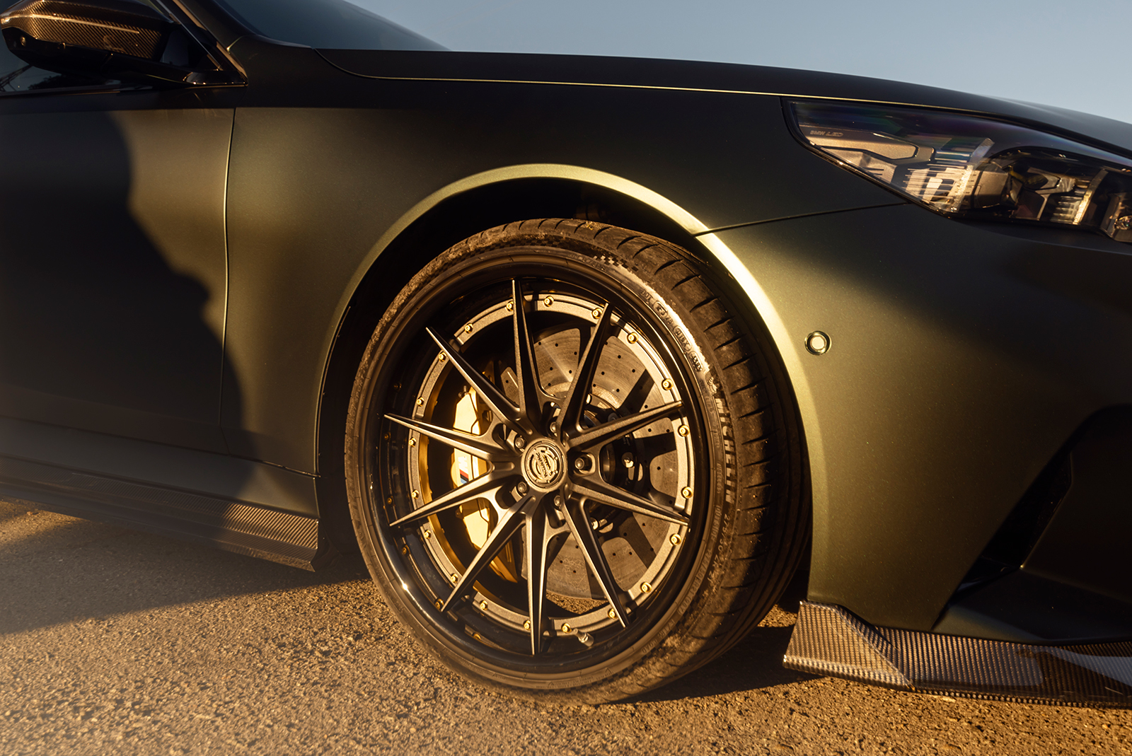 BMW M5 в кольоровій захисній поліуретановій плівці з повним перешиттям салону з шумоізоляцією, та з встановленням колісних дисків