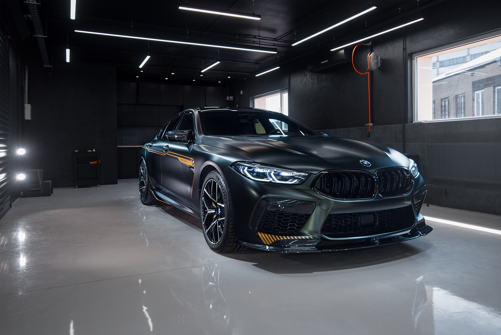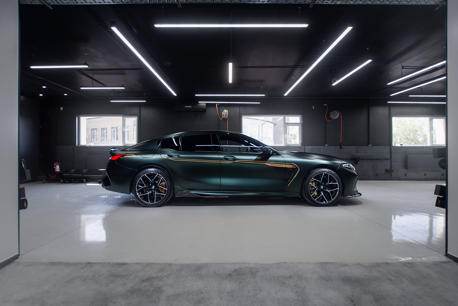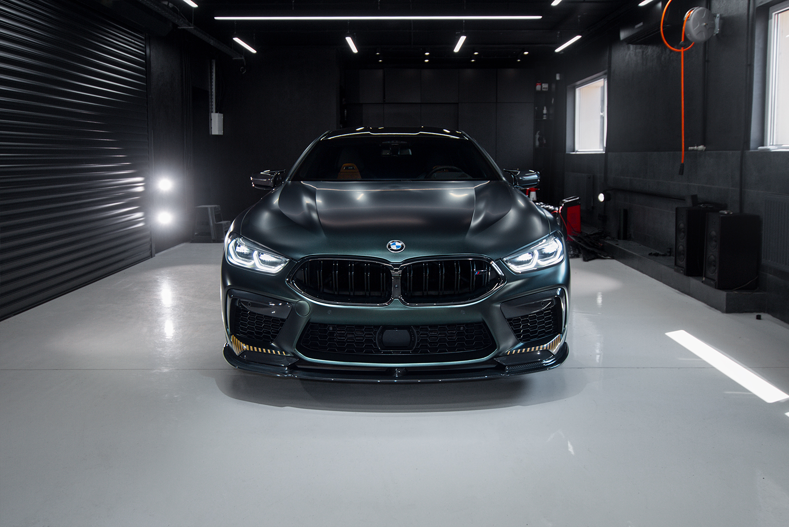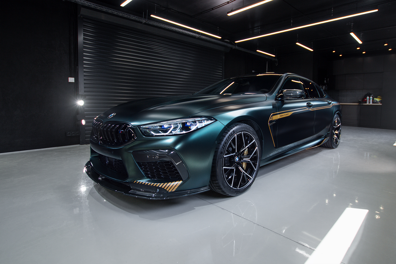 BMW M8 в кольоровій плівці із захисною сатиновою плівкою та з індивідуальним дизайном