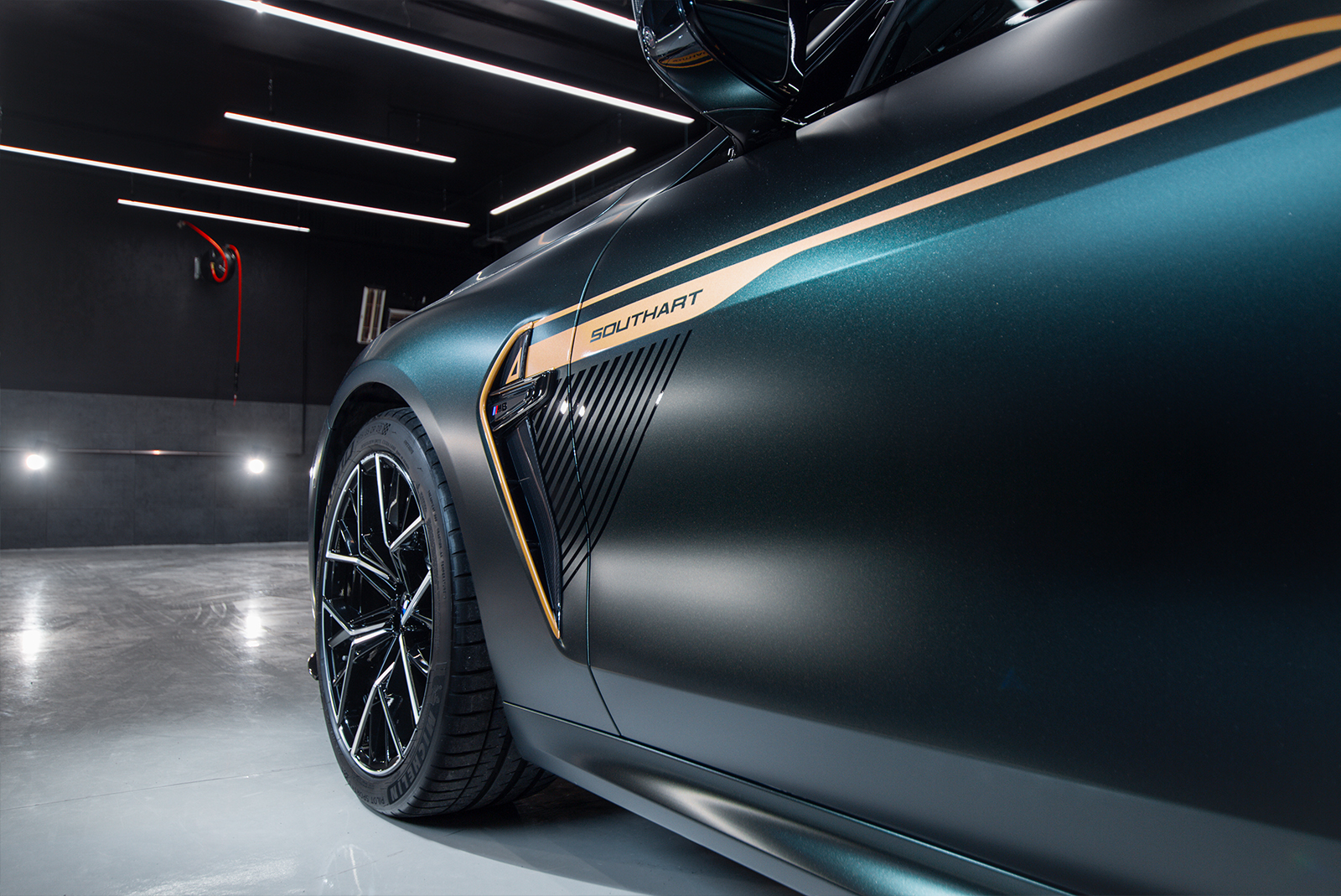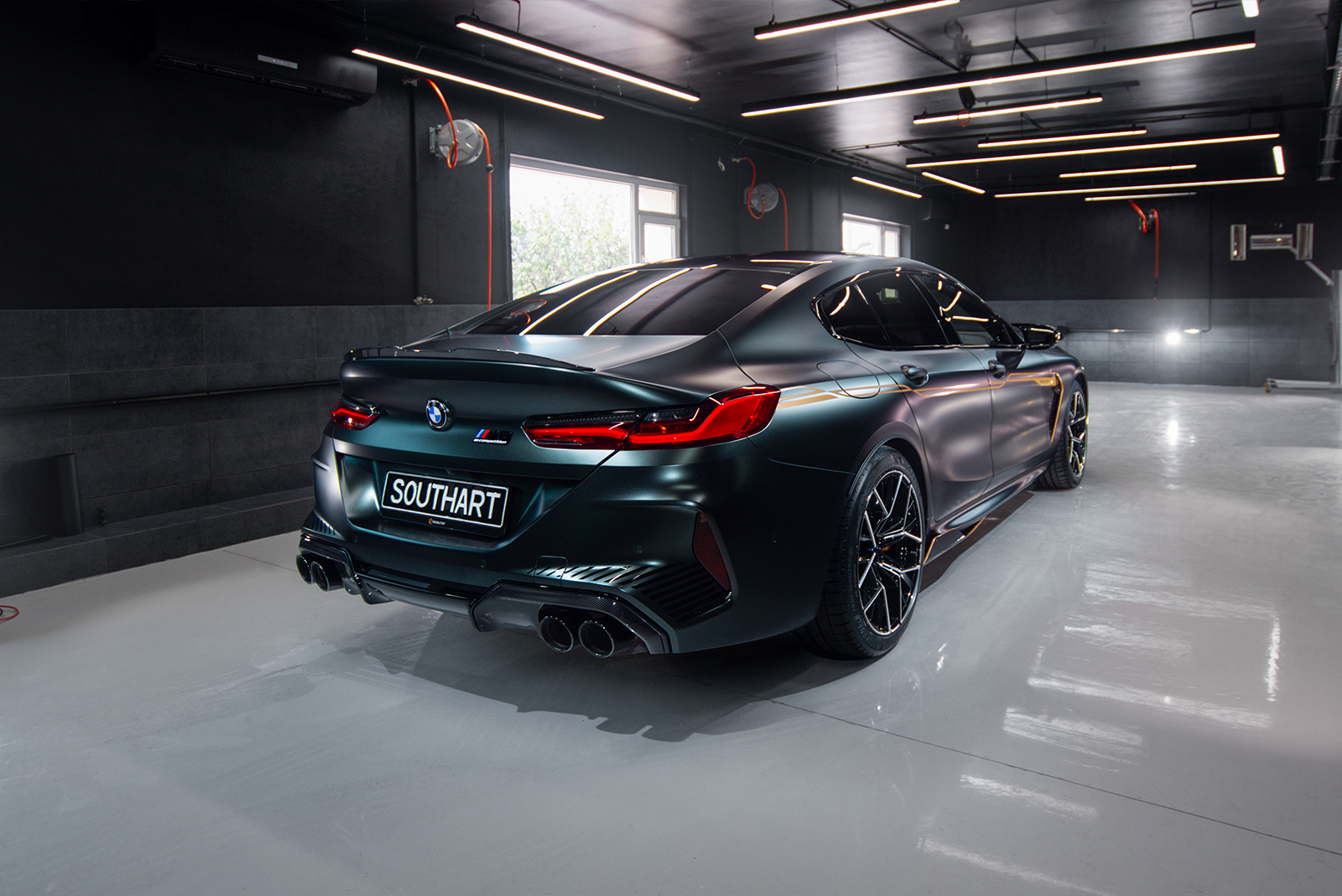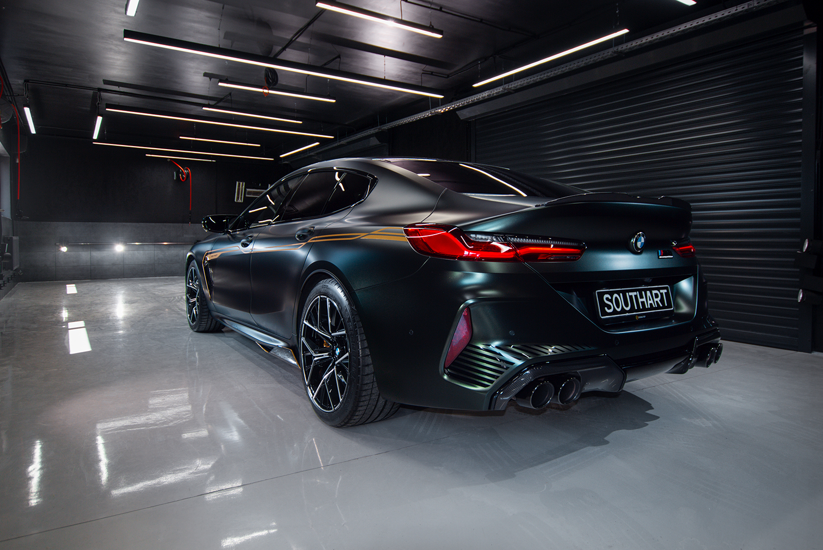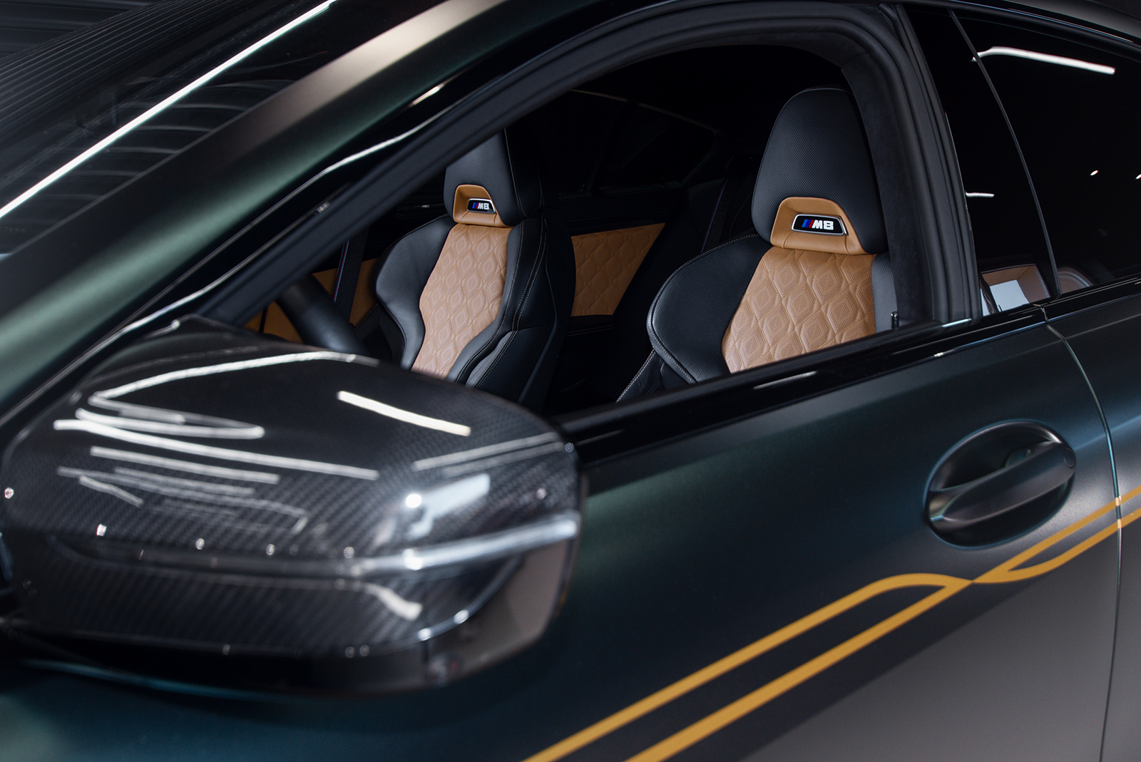 BMW M8 в кольоровій плівці із захисною сатиновою плівкою та з індивідуальним дизайном