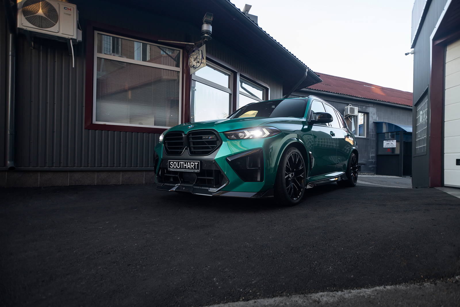 BMW X5M в кольоровій плівці та зі встановленими карбоновими елементами обвісу