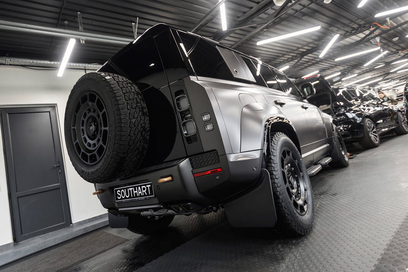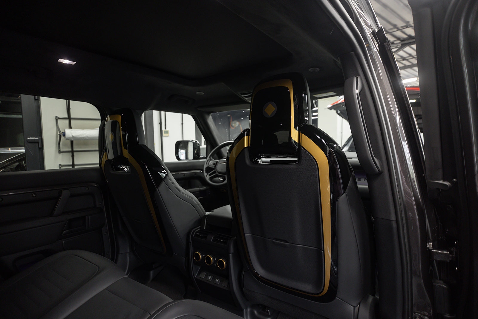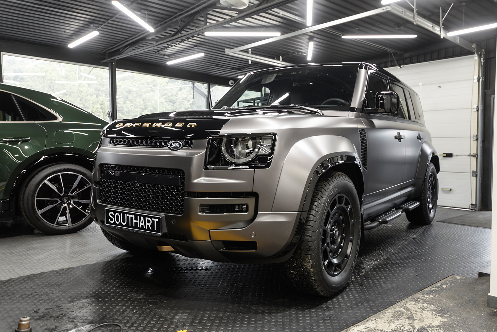 Land Rover Defender Octa з частковим перешиттям салону та фарбуванням пластикових елементів, обклеєний в сатиновий захисний поліуретан