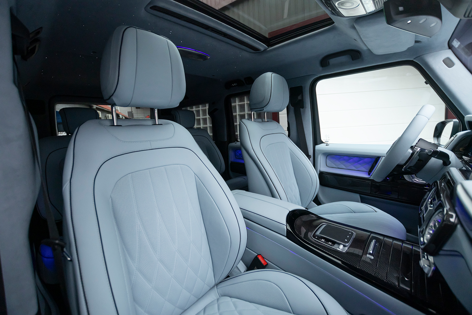 Mercedes G63 в кольоровій захисній поліуретановій плівці із повним перешиттям салону з встановленим зоряним небом