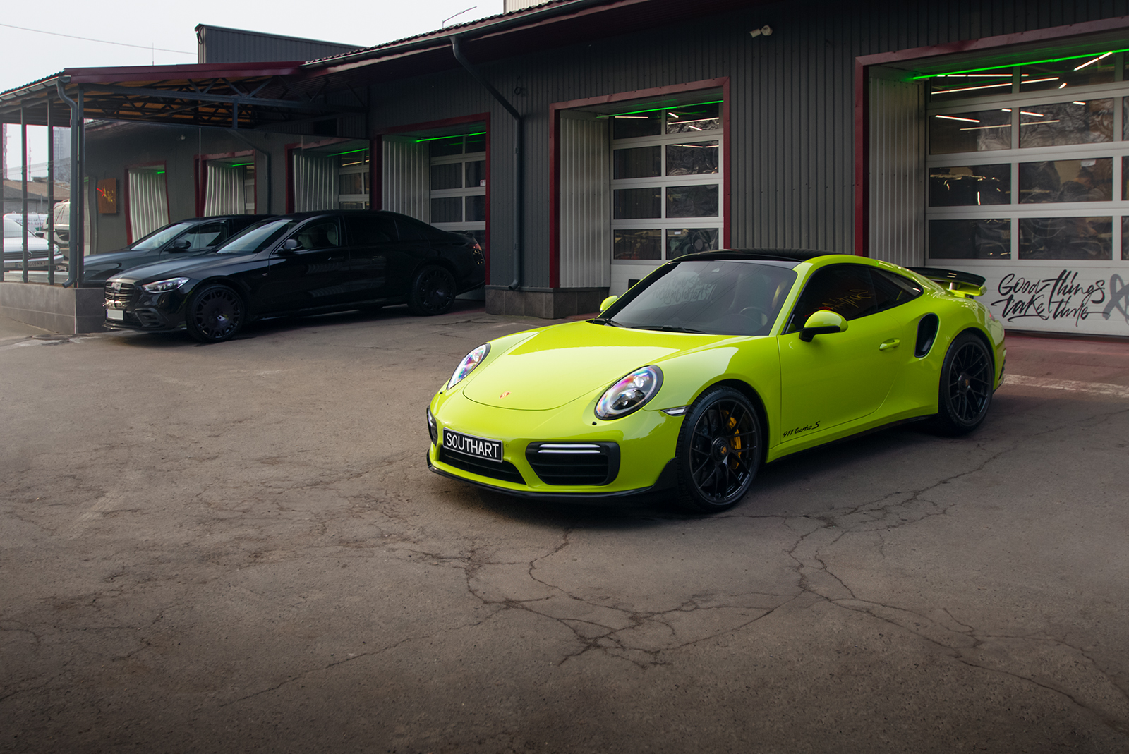 Porsche 911 Turbo S в ультраглянцевій захисній поліуретановій плівці та з дошиттям окремих елементів салону
